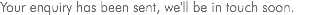Submitting Form... The server encountered an error, please try again. Your enquiry has been sent, we'll be in touch soon.